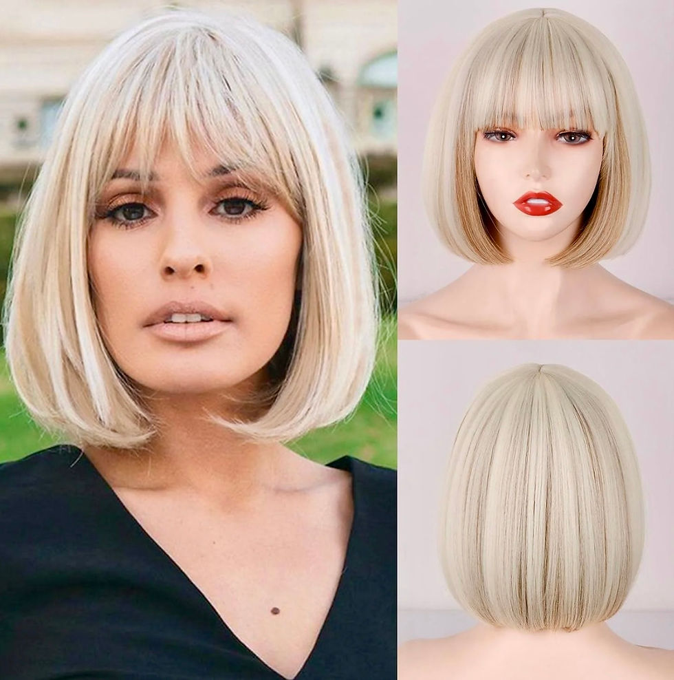 12-Inch-Short Straight Bob Wig Blunt Bang for Women |Gorgeous Synthetic Wig