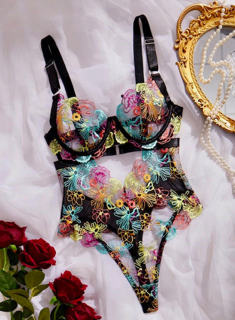 Women's Floral Embroidery Cut Out Sheer Sexy Lingerie