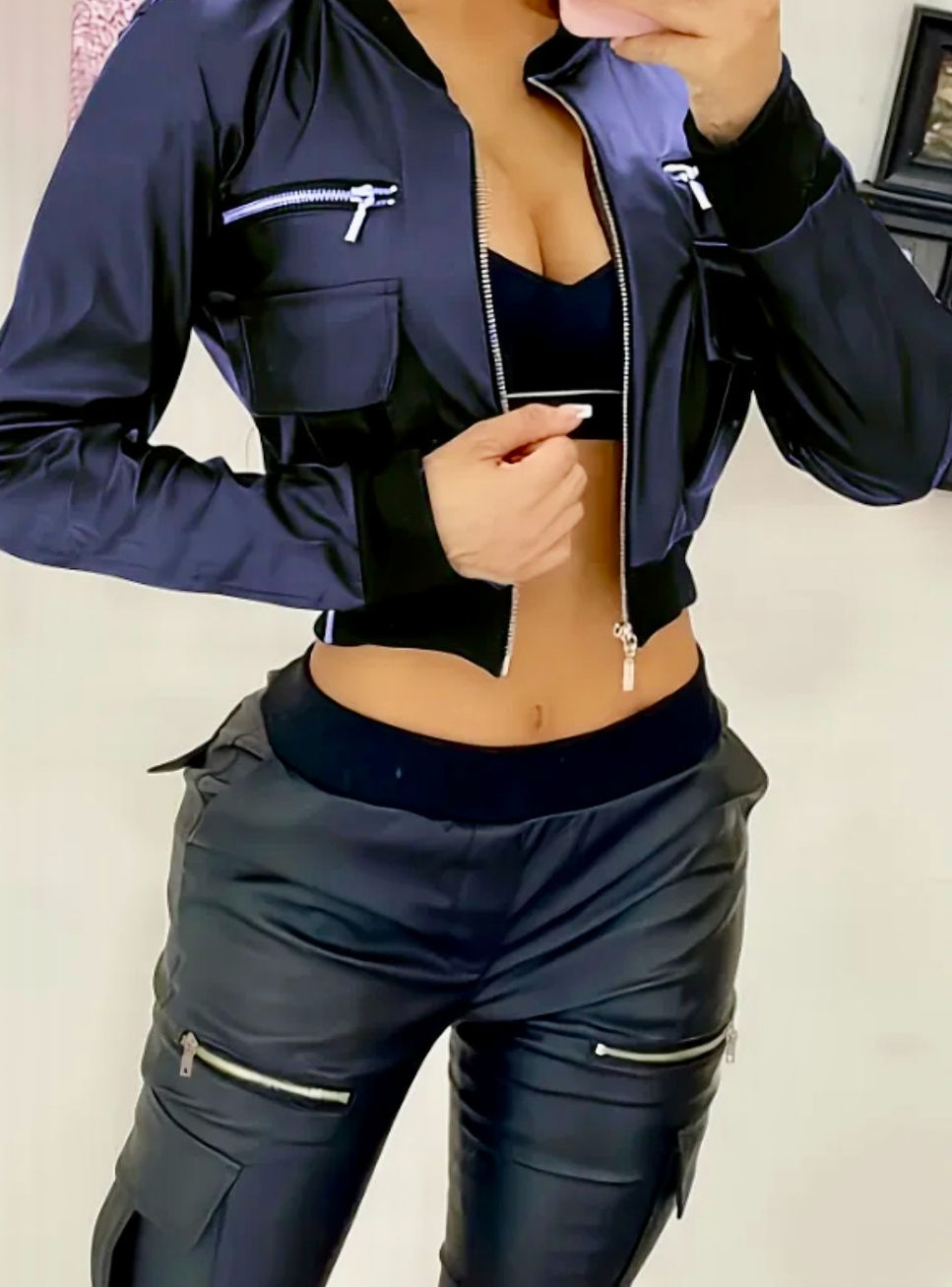 Trendy Solid Crop Jacket - Long Sleeve Zipper Front Jacket