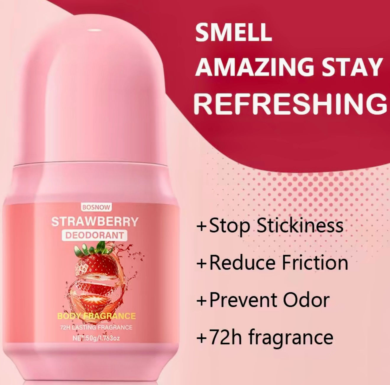 BOSNOW Strawberry Deodorant Portable Travel Perfume |Long Lasting Fragrance